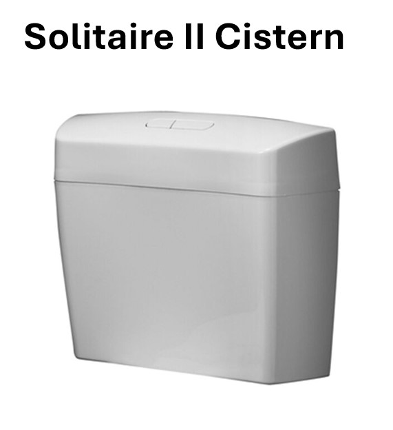 The Solitaire II is a mid sized modern styled cistern designed for retrofit installations. With a dual flush integrated system comprising of a cistern with low profile buttons and easy to clean rounded surfaces. The cistern is for use in mid to low level application.