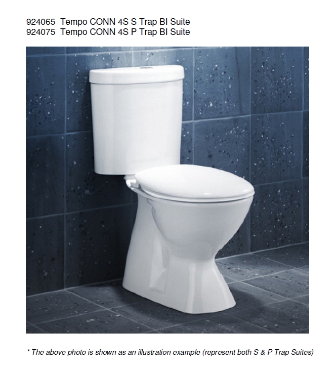 Adjustable connector styling Chrome button assembly Bottom inlet S or P Trap available Vitreous china, white only Includes Profile standard close seat