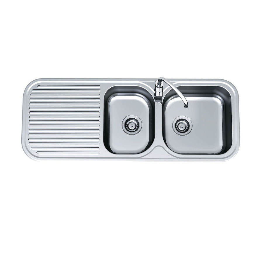 - Available in 0 or 1 tap holes - Available in left or right hand bowl - The clean lines of the embossed drainer and the unique bowl shape combine design and functionality - A great fit for those that require a little extra bowl space - Includes stainless steel basket waste - Engineered to last - Premium 304 grade stainless steel - Bowl volume : 18.5L (L) 13.3L (S) - Please Note: for accurate cutout sizes only use templates provided with packaging