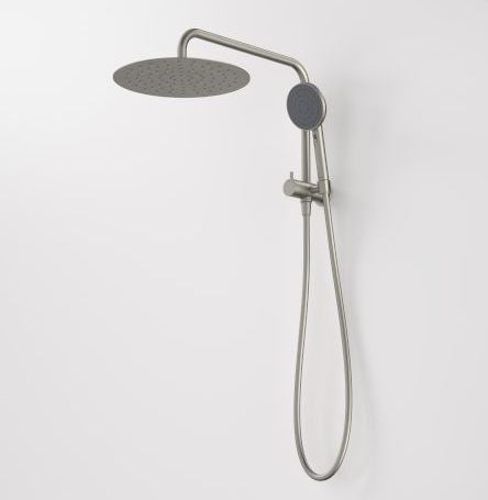 Caroma Liano II Compact Twin Shower with Overhead Brushed Nickel
